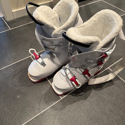 Alpina AJ3 alpinstøvler for barn i størrelse 35,5. Støvlene er hvite med rosa detaljer og har flere justerbare spenner for god tilpasning rundt fot og legg. Modellen har myk innersko for komfort og støtte. Egnet til bruk i alpinbakke for barn som står på ski på nybegynner- til viderekomment nivå.