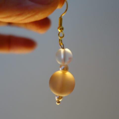Ny, håndlagd ørepynt / øredobber selges. Materialet er ekte 925 sterling sølv med gullforgylling, inkludert ørekrokene og metalltrådene. Vakre perler av jade i gule og gylne toner. Størrelsen på perlene er 8 mm og 10 mm. I tillegg nydelige ferskvannsperler, og små, gullfargede metallperler. Allergivennlig.