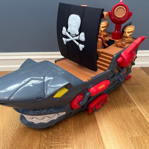 Piratskip med bilbane, bil, båt, krokodille og elektrisk blekksprut