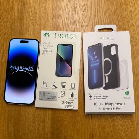 Selger min iPhone 14 Pro 256 GB. Telefonen fungerer helt fint og har ingen problemer med ytelse eller funksjon.