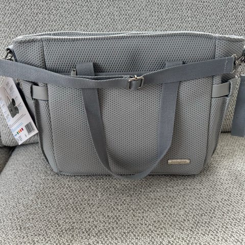 Vesken er utstyrt med 9 praktiske lommer slik at du enkelt kan organisere plass til tingene du trenger å ha med. Her finner du en lomme for bleier, mobiltelefon, nettbrett, og en termolomme for flasker.