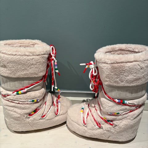 Kjempe kule Moon Boot sneakers joggesko i størrelse 39. Modellen har brunfargede og beige detaljer. Skoene har snøresystem med strikk, samt kraftig såle! Sålehøgde 6 cm.