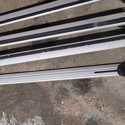 Skistativ. Thule føttene passet til 2016 mini cooper. Stativ går på skinner sånn at det kommer ut fra bilen, gjør det veldig enkelt å plassere ski istedenfoe å rekke over bilen. .