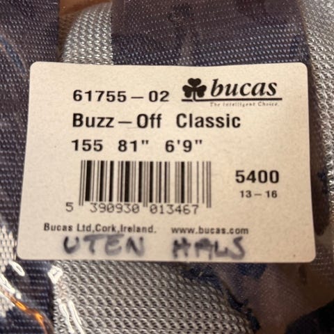 Buzz-Off treningsdekken er et lett mesh, todelt dekken med avtagbart halsstykke som gir forskjellige nivåer av beskyttelse. Hetten beskytter hestens hals, bryst og skuldre. Det kommer med et elastisk pannebånd som hjelper til med å holde dekkenet på plass oppover halsen, og festes med borrelåsstropper til treningsdekkenet ved manken og foran salen.