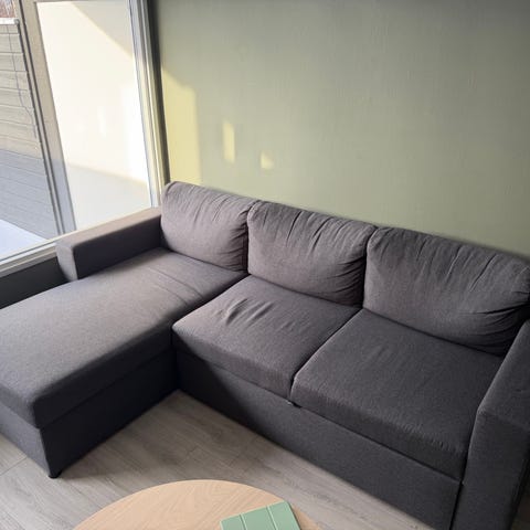 IKEA sovesofa kjøpt ny i 2019. Stort sett bare brukt som vanlig sofa. Det er behov for å demontere og frakte den fra Sinsenveien 45C på Løren mellom 22. februar og 1. mars. Prisen kan diskuteres. Viktigst at noen får bruk for den. Litt treig del til sovesofaen. Må justeres litt når den monteres på nytt igjen.