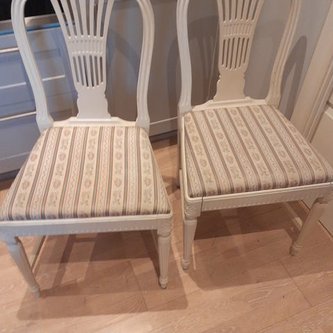 Spisestoler gis bort mot henting, trenger maling og 2 puter er løse