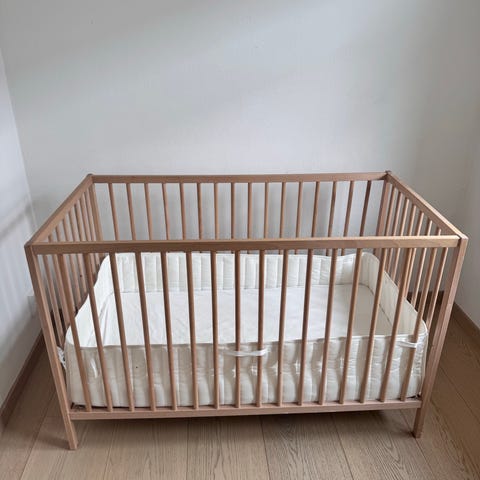 IKEA SNIGLAR klassisk sprinkelseng i naturfarget tre. Svært pent brukt, da babyen mest har ligget i vår seng.