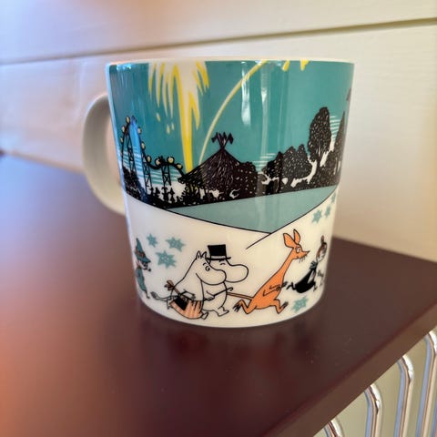 Denne spesielle koppen ble utgitt i 2023 for å feire 4-årsjubileet til Moominvalley Park i Hanno. En eksklusiv utgave som kun selges i Japan, noe som gjør den til et svært ettertraktet samleobjekt.