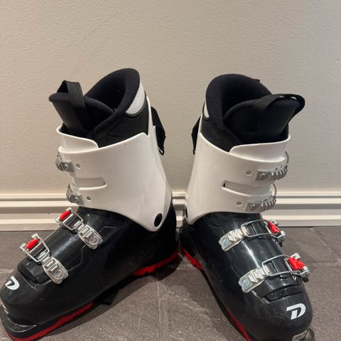 Dalbello skistøvler for barn i hvit og svart farge. Støvlene har justerbare spenner foran og bak for god tilpasning til foten. Myk og polstret innersko gir komfort og støtte. Passer til vanlige alpinski-bindinger for barn. Størrelse 35