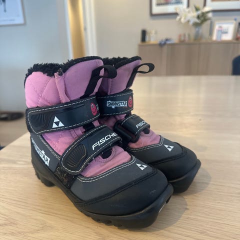 Fischer Snowstar barn skisko i rosa og svart. Modellen har varm, myk innside og borrelåslukking over vrist og ankel for enkel tilpasning. Sålen er tilpasset barneski med passende bindingssystem. Egnet for barn til bruk på langrennsski og lek i snøen.