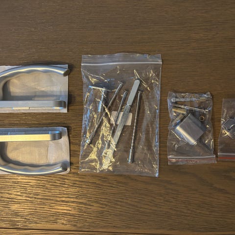 Skapdør-håndtak, ikke åpnet. Kr 50,- per pakke.