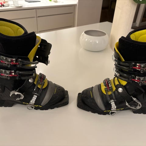 Godt brukte men fullt funksjonelle Nordica alpinstøvler for barn. Bruksmerker, men ingen skader eller ødelagt. De er nok mer str 34 enn str 31.