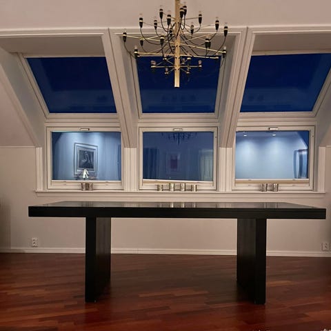 Bordet består av 3 glassplater og understell. Det er veldig tungt, men siden det er enkelt å demontere kan det lett å fraktes.