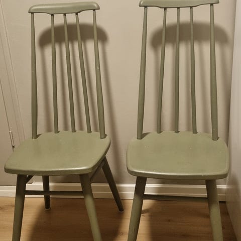 Selger fire pent brukte stoler. Malt i beige og selges samlet for 800kr.