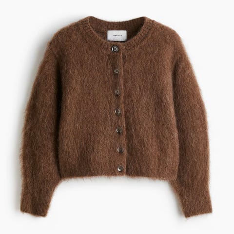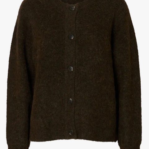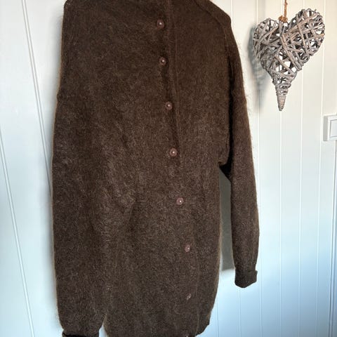 Super mohair petit cardigan med signatur-knapper fra Cathrine Hammel, strikket i mohairull, som gir et mykt og loddent uttrykk. Modellen har rund hals, lange ermer og knappelukking foran. Passer godt til bruk over topper, skjorter eller kjoler i hverdagen eller til enklere penere antrekk. Nydelig myk og allsidig.