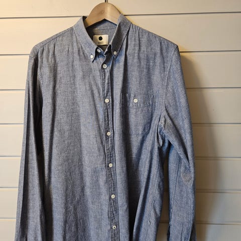 Knapt brukt Kitsune skjorte i str.42. Tilsvarer M/L. Blå Oxford bomull. Kjøpt på CARE of Carl. Maison Kitsune
