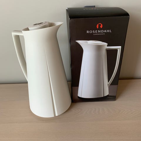 Rosendahl Grand Cru termokanne 1,0 l i svart. Termokannen har et klassisk, slankt design med håndtak og helletut. Volumet på 1 liter gjør den egnet til kaffe, te eller andre varme drikker. Innsiden er utstyrt med glassinnsats som bidrar til å holde drikken varm. Lokket kan skrus av for enkel påfylling og rengjøring. Passer til bruk både hjemme, på kontoret og på tur.