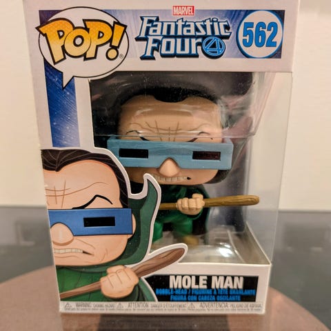 Funko Pop Marvel Mister Fantastic 557. Den er godt bevart og har ingen skader eller bretter.