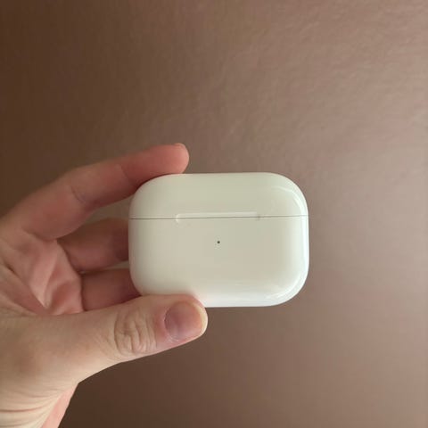 Apple AirPods i god stand utenom at den lader bare med vanlig iPhone lader, ingen hurtigiphone lader funker på de, veldig rart men tenker d problemet er at den kan bare ta imot maks så mye strøm omgangen å ikke funker med for sterke ladere, utenom det er de gode å ha i øret, å god lyd på de.