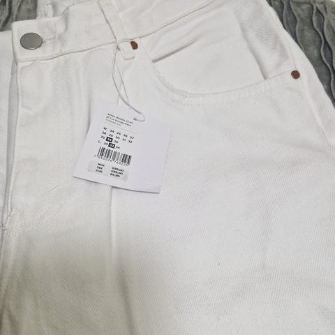✨Beige jeans i W28 (S). Klippet til å passe 160 cm. Myk og god.