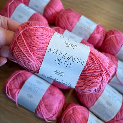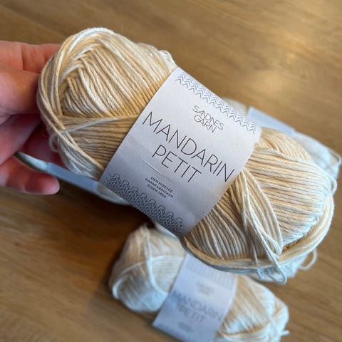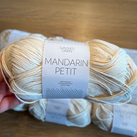 7 nøster Mandarin Petit i fargen 1012 fra Sandnes Garn🤍 Hentes hos meg eller sendes mot at kjøper betaler frakt😄