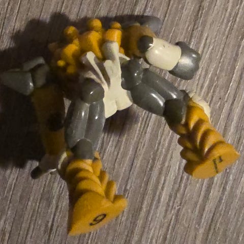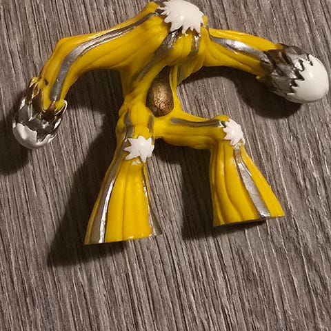 Kjennetegn: Figuren er gul med sølvstriper og hvite detaljer på hender og hode.