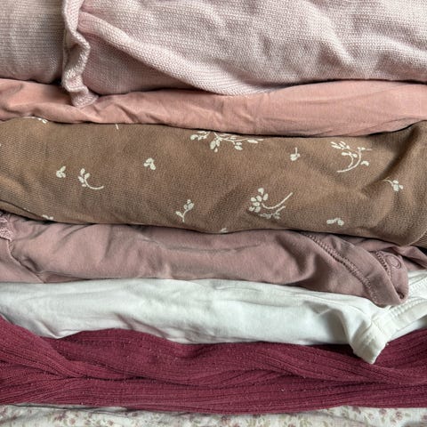 Husker ikke hva de andre heter. Den stripete rosa er i bomull, de andre er i ull.