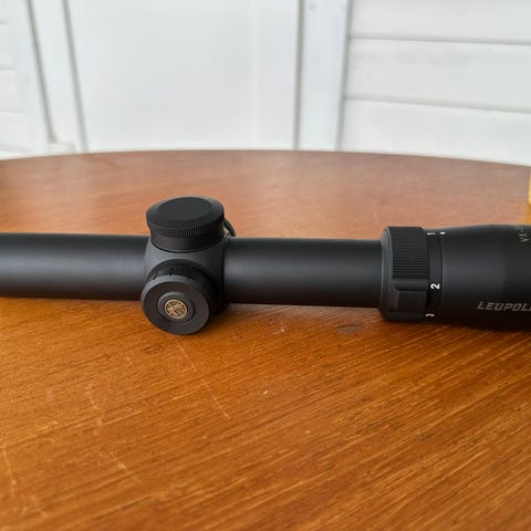 Siktet har variabel forstørrelse fra 1x til 6x og objektivdiameter på 24 mm. Justeringshjul for forstørrelse er plassert bak på siktet, med tydelig markering av forstørrelsesnivåene.