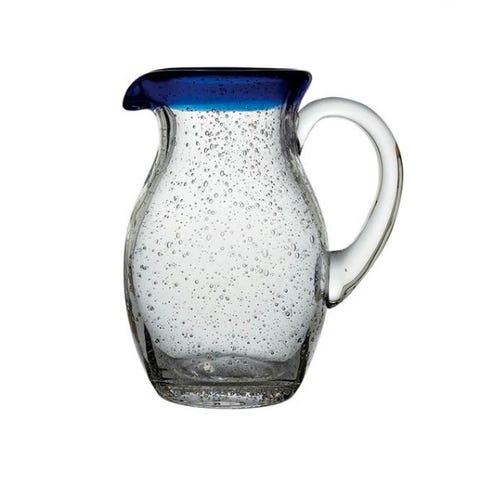 Borosilikatglass, håndlaget, vid hals for enkel påfylling og isbiter, fiskehalehåndtak for sikkert grep, en glad klukkelyd oppstår når man heller.
