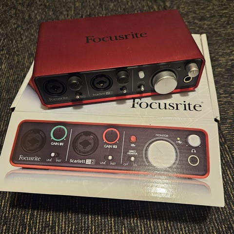 Focusrite Scarlett 2i2 USB lydkort til salgs. Pent brukt og i god stand. Kan hentes i Drøbak eller Gjøvik.