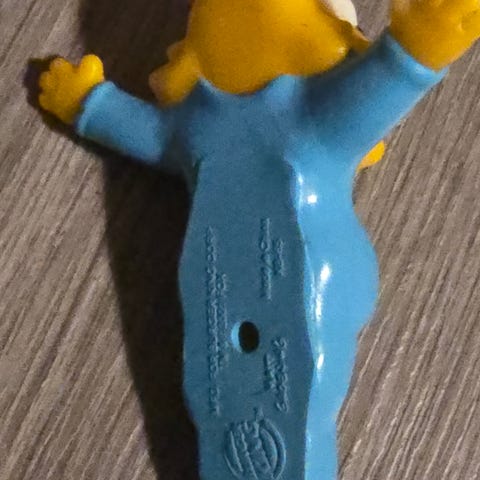 Beskrivelse: Figuren viser Ulven i en blå dress som sitter på en gul motorsykkel. Den er designet slik at den kan kjøre på bakhjulet (en "wheelie").