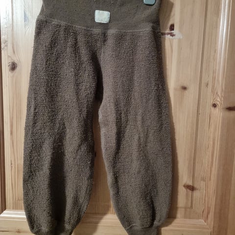 Deilig litt tykkere ullbukse fra Memini. Str 104. Består av 80% lammeull og 20% polyamid. Mørk grå med lys grå ribb. Buksen fremstår som ny/ubrukt