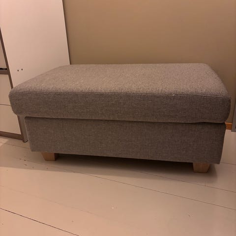Selger pent brukt puff/pall fra Bohus i fargen Morris lys grå. Pallen er kjøpt ny i 2019, men er lite brukt da den har vært oppbevart ca. 4 år i en innebod. Ben i oljet eik. Røyk og dyrefritt hjem. Må hentes.
