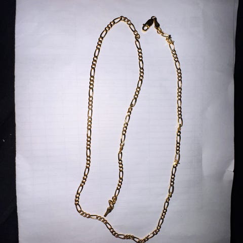 Selger et Figarohalskjede laget av 18 karat gull (750). Dette kjedet er 45cm langt og har en klassisk Figaro-design som passer til enhver anledning.