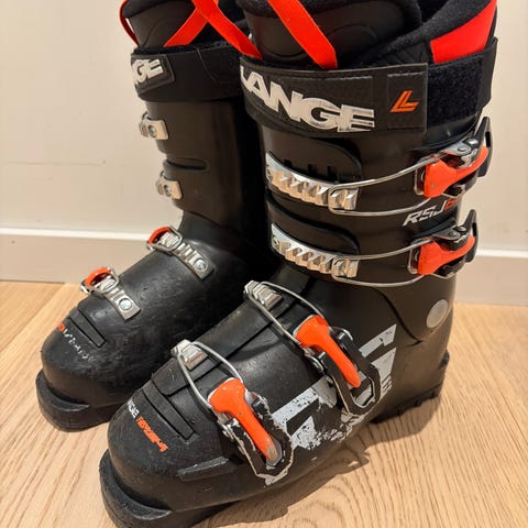 Lange alpinstøvler i svart med oransje detaljer. Modopoint 215 (str 34). Flex 60. Støvlene har flere justerbare spenner foran og høy skaft for god støtte rundt ankel og legg. Egnet for bruk i alpinbakke med standard alpinski-bindinger.