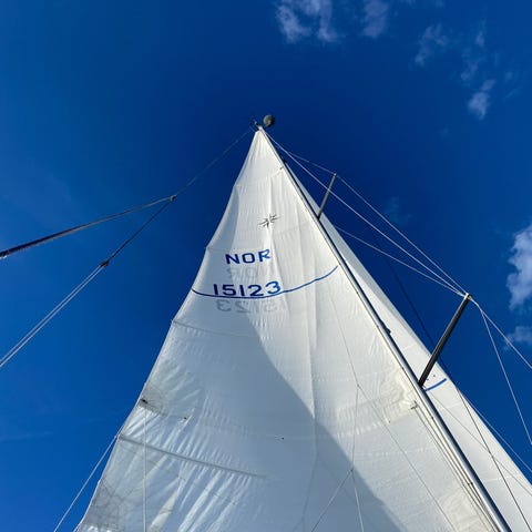 Selger et pent J‑Sail Optimist-seil i hvit duk med røde seilnummer – perfekt for både trening, regatta og hyggelig turseiling. Seilet har gjennomsiktige vinduer som gjør at du alltid har god oversikt, og forsterkninger som gjør det slitesterkt og holdbart.🙌