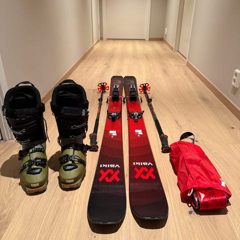 Scarpa skistøvler og Völkl Inuk topptur ski med NTN bindinger