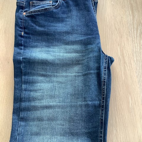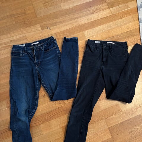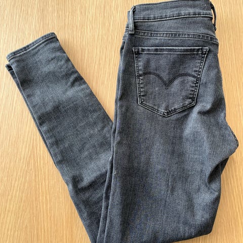 Mørkeblå Levi's jeans, str 28/28. Modell «Skinny». Buksen har klassiske baklommer og smal passform.