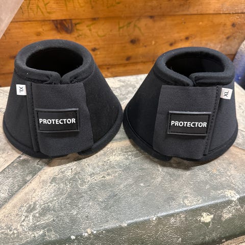 EquiXpert klokker for hest i størrelse M. Klokkene er svarte og festes med borrelås. Myk, polstret innside og forsterket utside gir beskyttelse rundt kronranden og ballene på hoven. Egnet til bruk ved ridning, trening eller i luftegård for å redusere risiko for overtråkk og skoavtrekk.