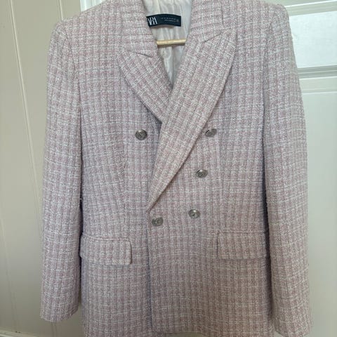 Kjempefin blazer fra Zara i str M, rosa. Aldri brukt, lappen henger fortsatt på. Bildene som ligger ute er de som er tilgjengelig og jeg kan dessverre ikke måle noe.