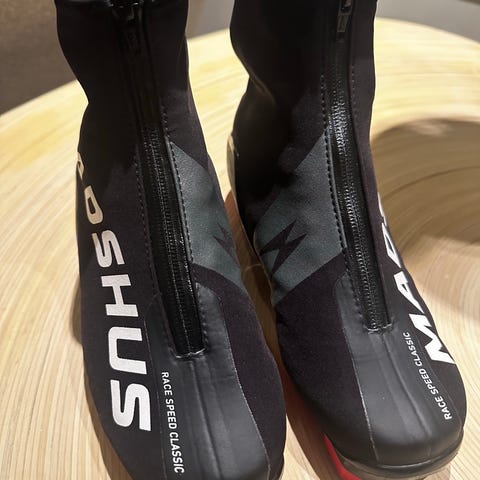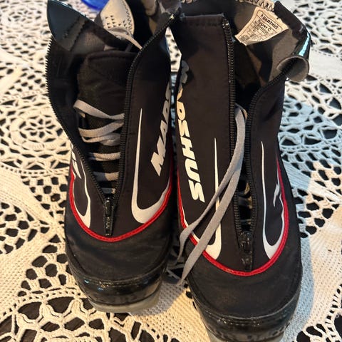 Madshus Active C langrennsstøvler i størrelse 42. Modellen er en klassisk langrennsstøvel med overtrekk og glidelås i front. Fargekombinasjon svart og rød. Støvlene har snøring under glidelåsen og er beregnet for bruk med klassiske langrennsbindinger som passer denne typen såle. Egnet til tur- og treningsbruk på ski.