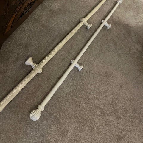 Valnøttfargede gardinstenger selges. 3,4 cm i diameter.