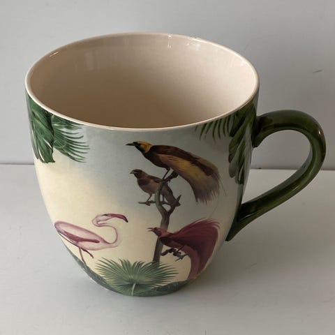 Imra XL-krus fra Indiska. Dette er et stort, mønstret krus i stentøy som regnes som en klassiker hos kjeden.