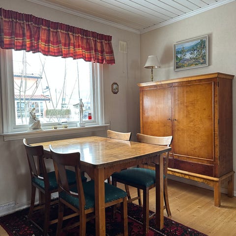Spise gruppe i flammebjerk selges + lenestoler i samme stil