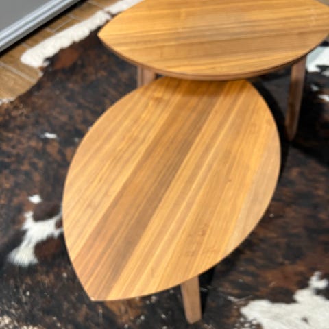 De løvformede bordene ser dekorative ut i et rom. Du kan plassere dem hver for seg, eller sette dem sammen til et stort bord.
