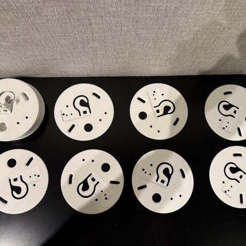 3 knotter til skuffer, kommode eller skap i grønn og hvit. Er i plastikk, men ligner keramikk. Virker å være god kvalitet.