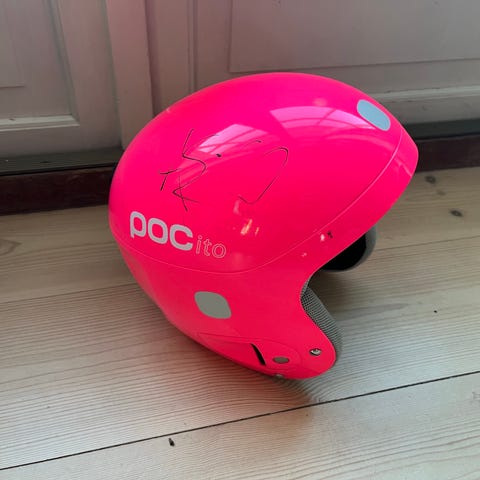 POC Skull X SL-hjelm med bøyle i størrelse M 55/56 Ventilasjonshull på toppen og justerbar hakestropp med klips.