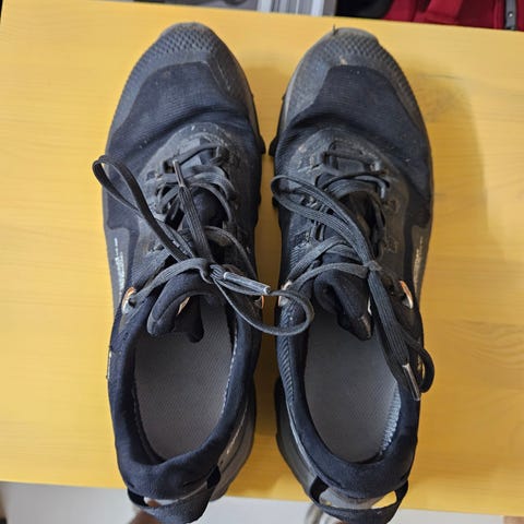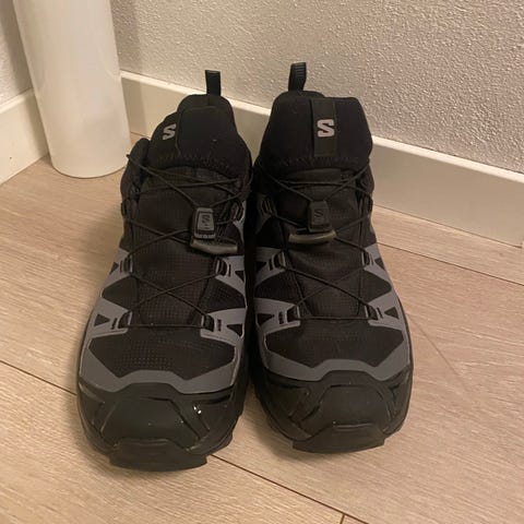 Salomon XA Pro 3D GTX tursko i størrelse 42. Skoene er svarte med syntetisk overdel og kraftig yttersåle med grovt mønster tilpasset fottur og turbruk. Modellen har hurtigsnøring og Gore-Tex-membran (GTX) som gir vannavvisende egenskaper. Passer til fotturer og generell bruk utendørs.
