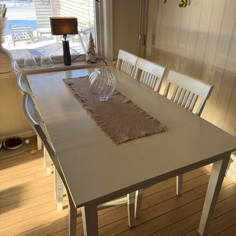 Selger denne spisestuen 170x90 cm med 6 stoler.