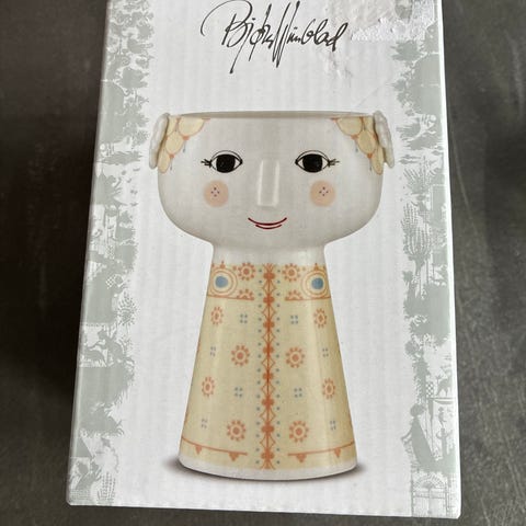 Det delikate ansiktet er fra Wiinblads opprinnelige strek, og kjolemønsteret er en fortolkning av Bjørn Wiinblads illustrasjoner.